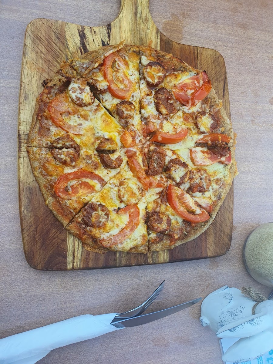 The vegetarian and the chorizo pizza was yummy. Their almond and coffee torte was amazing. The hosts are kind and friendly. The place has a cozy atmosphere as well.